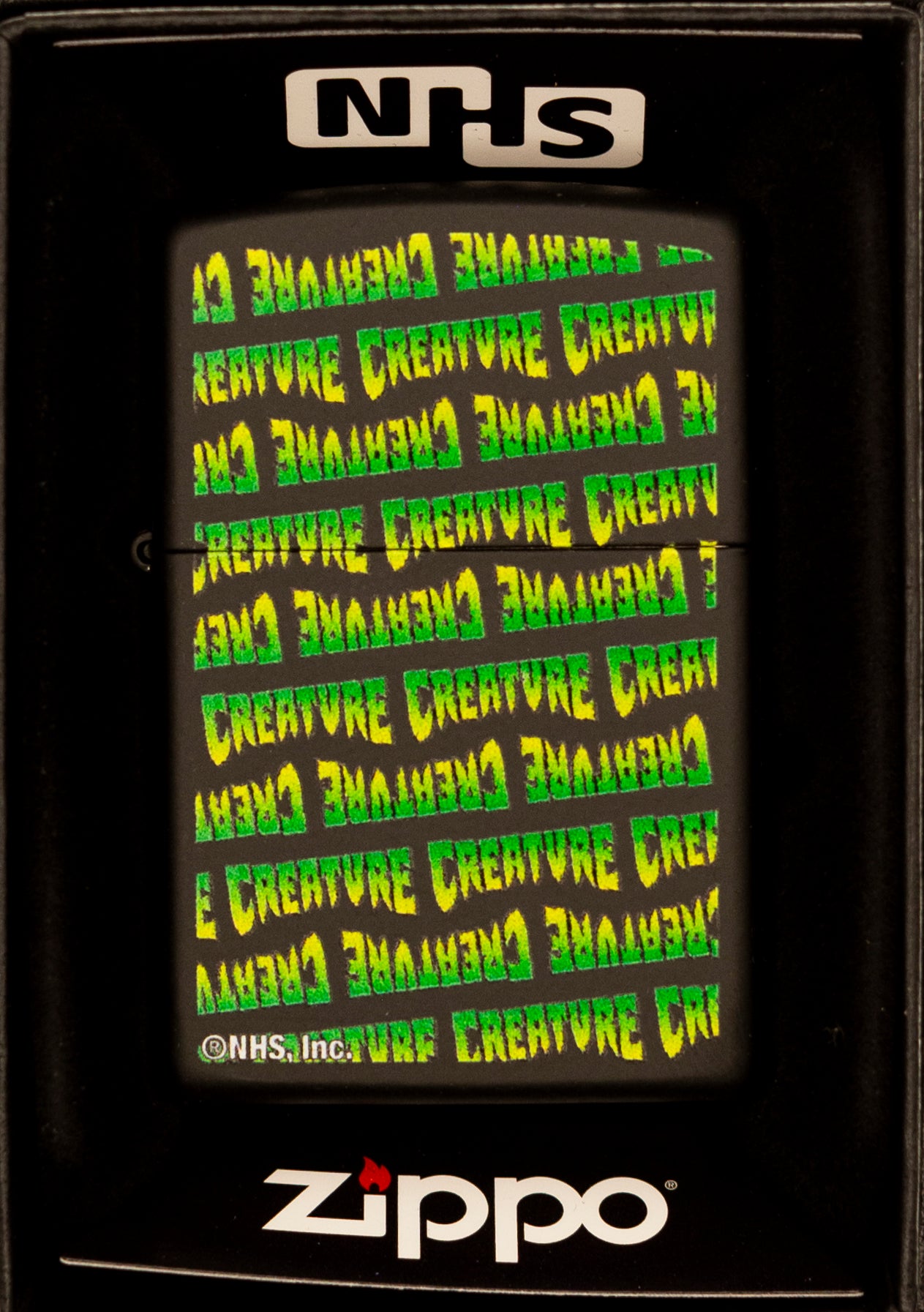 Introducing a new line of designs featuring NHS's Creature brand iconic artwork. Inspired by the vivid graphics that are splashed across their skateboard decks, this windproof lighter features Creature Logo on a Black Matte lighter. Comes packaged in a gift box. For optimal performance fill with Zippo lighter fuel.