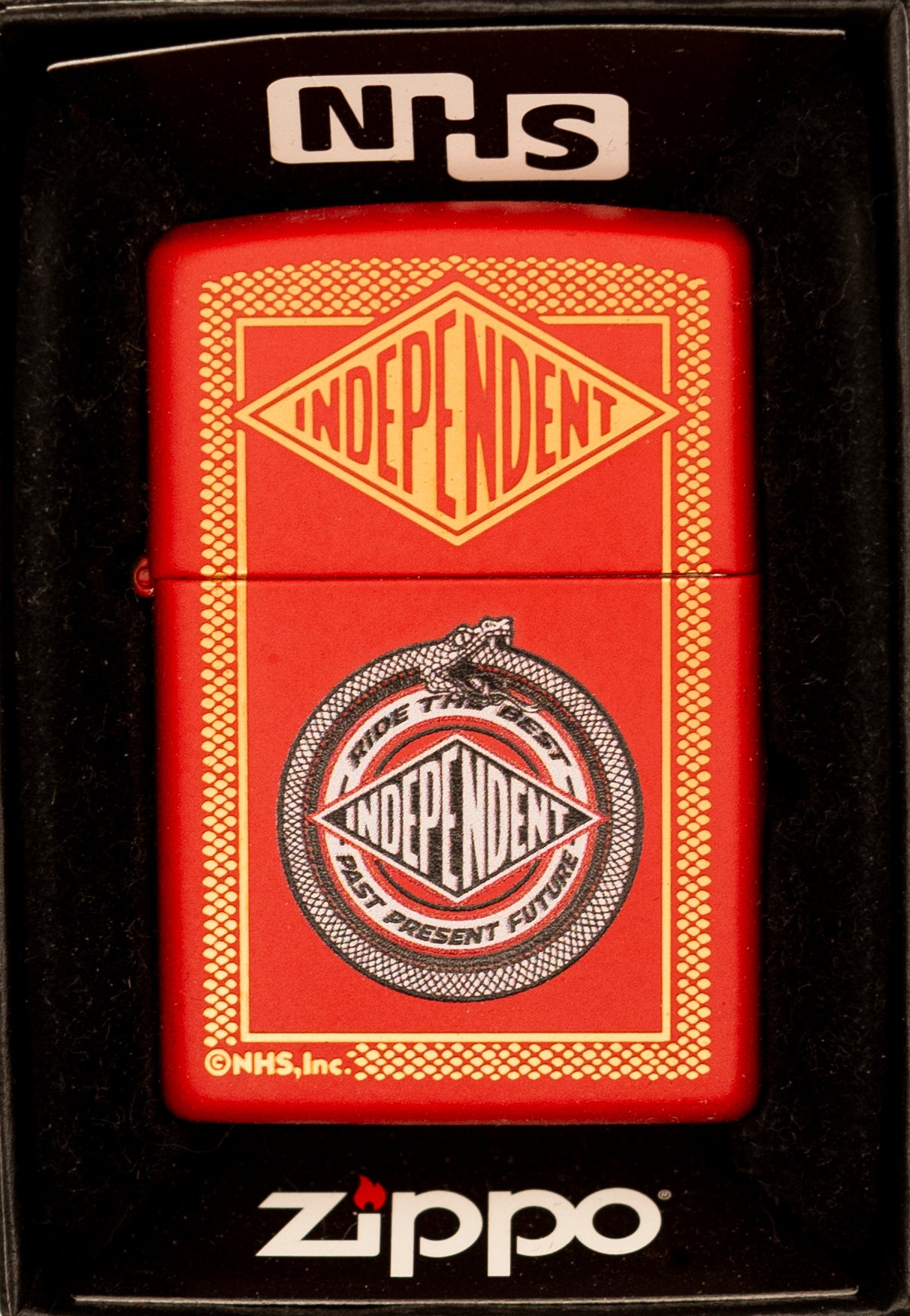 Introducing a new line of designs featuring NHS’s Independent Trucks brand iconic artwork. Inspired by the graphics that are splashed across their trucks, this windproof lighter features the new Independent logo and color imaged on a Red Matte lighter. Comes packaged in a gift box. For optimal performance fill with Zippo lighter fuel.