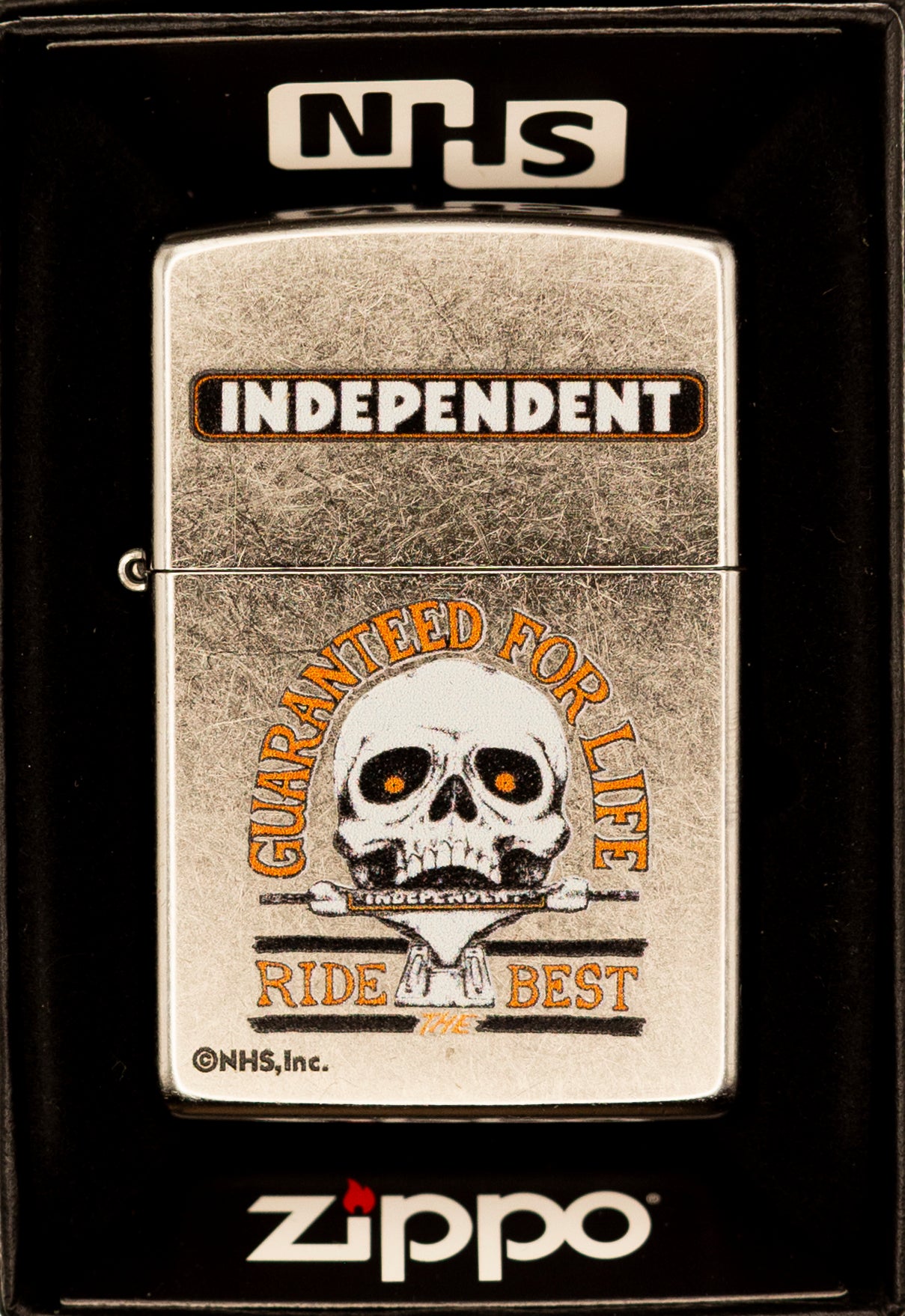 Introducing a new line of designs featuring NHS’s Independent Trucks brand iconic artwork. Inspired by the graphics that are splashed across their trucks, this windproof lighter features the new Independent logo and color imaged on a Chrome lighter. Comes packaged in a gift box. For optimal performance fill with Zippo lighter fuel.