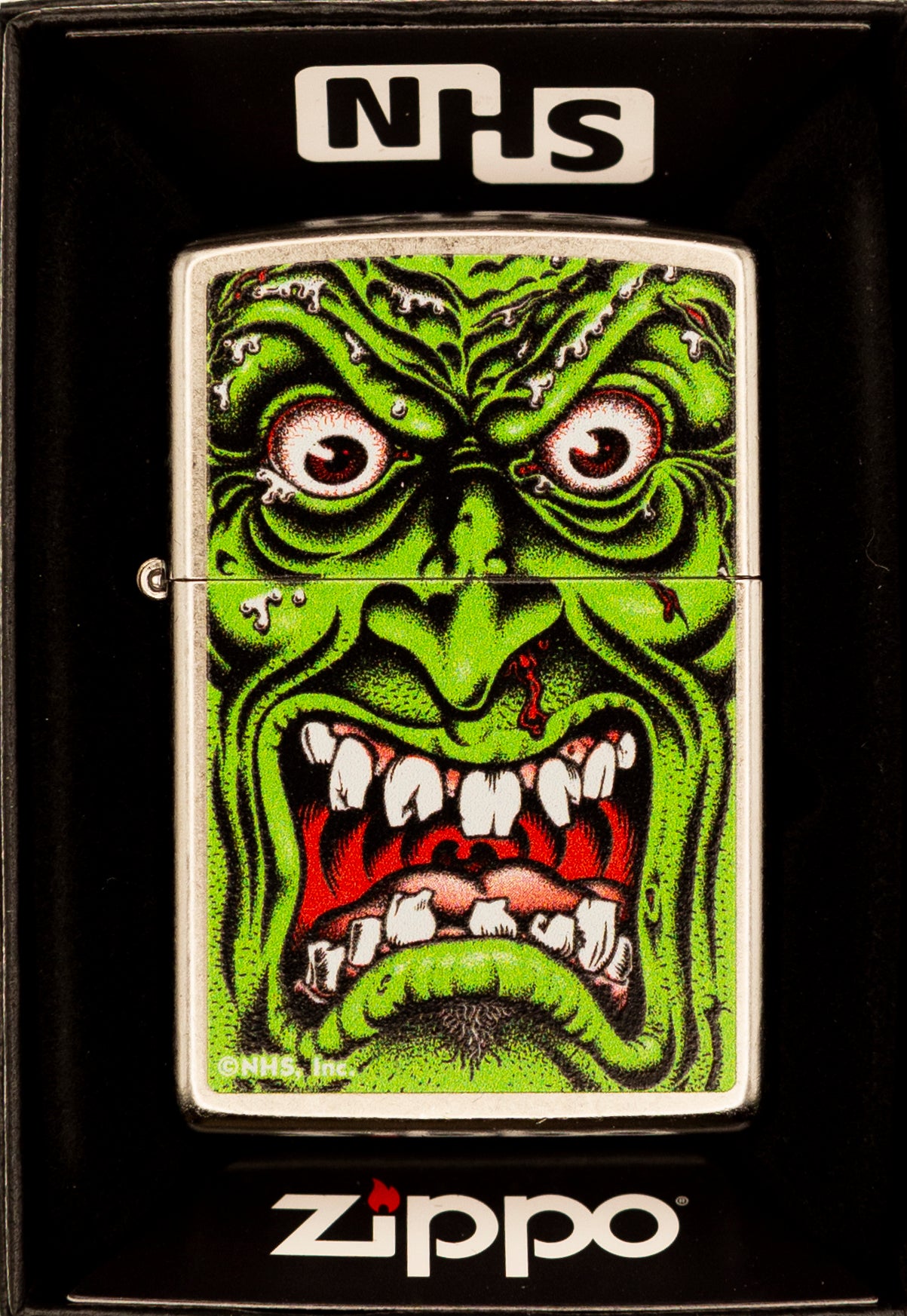 Introducing a new line of designs featuring Santa Cruz Skateboards’ iconic artwork. Inspired by the vivid pop-art graphics that are splashed across their skateboard decks, this windproof lighter features the iconic Santa Cruz Roskopp face graphic, which is color imaged on a Chrome lighter. Comes packaged in a gift box. For optimal performance fill with Zippo lighter fuel.