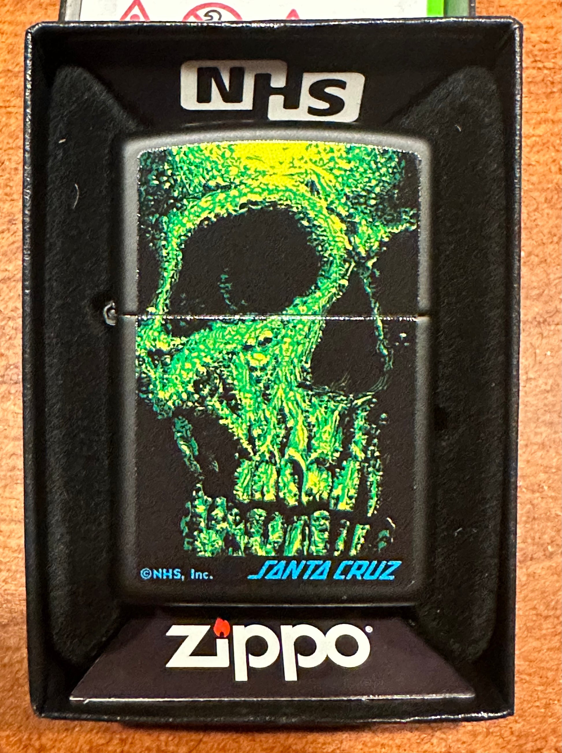 Introducing a new line of designs featuring Santa Cruz Skateboards’ iconic artwork. Inspired by the vivid pop-art graphics that are splashed across their skateboard decks, this windproof lighter features the Santa Cruz Street Creep graphic, which is color imaged on a Black Matte lighter. Comes packaged in a gift box. For optimal performance fill with Zippo lighter fuel.